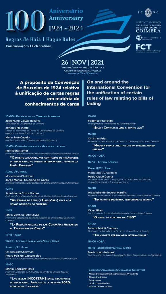 COMEMORANDO OS 100 ANOS DAS REGRAS DE HAIA. A PROPÓSITO DA CONVENÇÃO DE BRUXELAS DE 1924 RELATIVA À UNIFICAÇÃO DE CERTAS REGRAS EM MATÉRIA DE CONHECIMENTOS DE CARGA